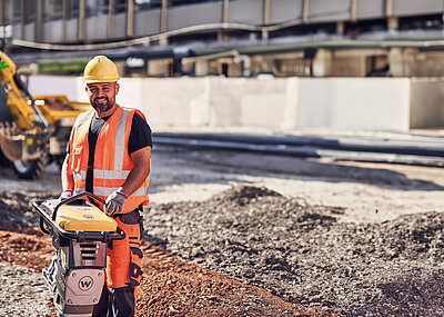 Im Bereich Verdichtung werden aktuell etwa die reversierbaren Akkuplatten »APU« gezeigt, welche mit dem Akku des herstellerübergreifenden Battery-One-Standards betrieben werden und mit Zentrifugalkräften von 28 und 33 kN sowie Arbeitsbreiten von 40, 50 oder 60 cm erhältlich sind. Bei den leicht bedienbaren Vibrationsplatten »APU28« und »APU33« sorgt der Direktantrieb »DireX«, eine Eigenentwicklung von Wacker Neuson, für eine Kraftübertragung ohne Übertragungs- und Reibungsverluste und somit für längere Laufzeiten sowie geringeren Wartungsaufwand. Zudem erweitert Wacker Neuson mit einer neuen Generation der »DPU« und »BPU« das Angebot an reversierbaren Mittelplatten mit Benzin- oder Dieselmotor. Sie sind mit einer Verdichtungsleistung von 52 und 62 kN sowie Arbeitsbreiten von 47, 60 und 75 cm erhältlich.