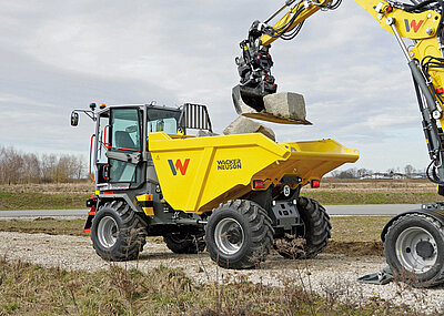 Im Bereich der Dual-View-Dumper wurde ein innovatives Muldenwechselsystem am »DV60« präsentiert. Es ermöglicht ein schnelles und einfaches Austauschen der Mulde, um beispielsweise von einer Drehkippmulde auf eine Dreiseitenkippplattform umzusteigen. Mit verschiedenen Mulden können die Dumper dadurch etwa als Lkw-Ersatz noch flexibler zum Einsatz kommen.d