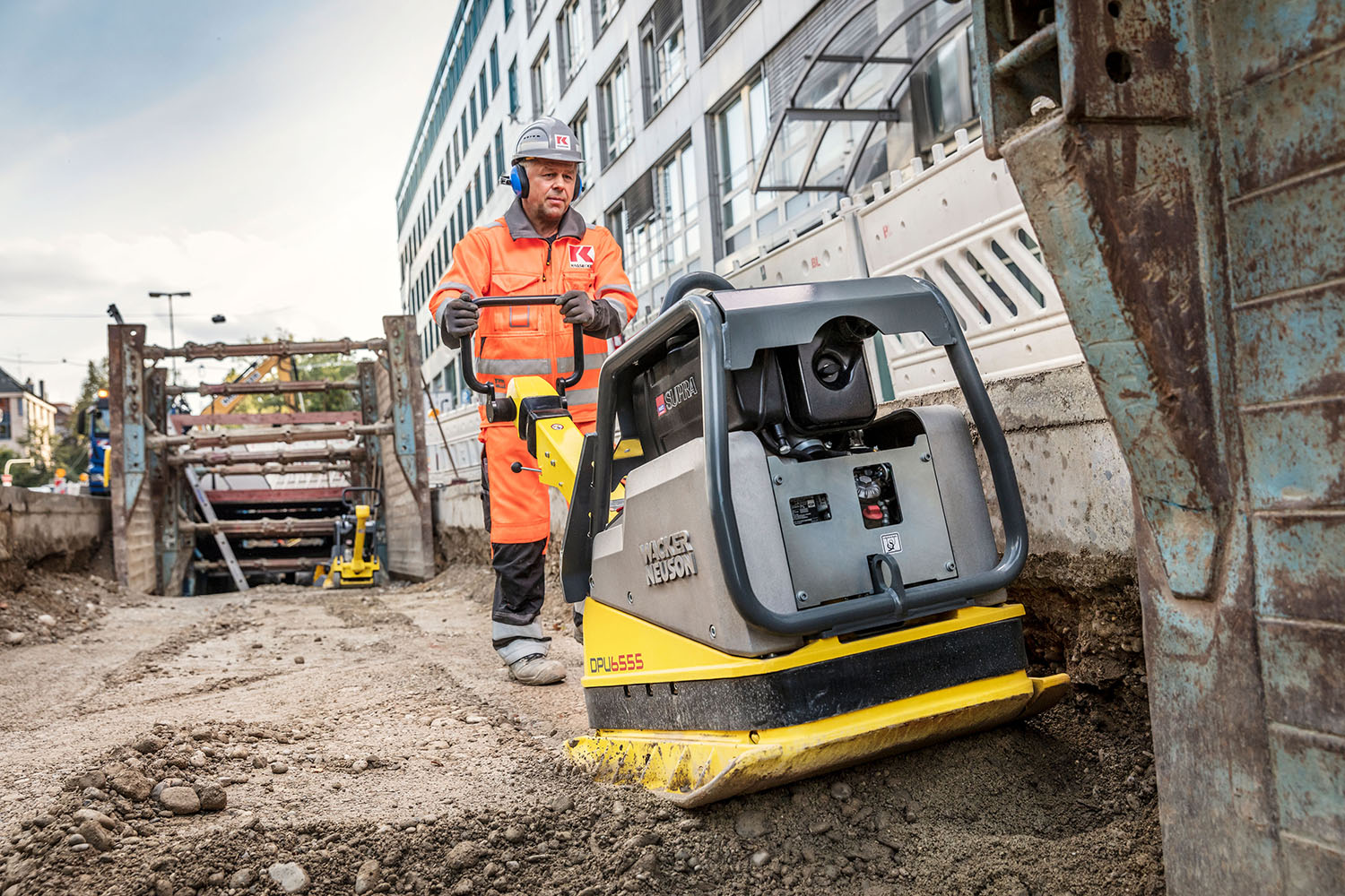 Verdichtung hat bei Wacker Neuson eine nunmehr 90-jährige Tradition. Vom 30-Kilogramm-Stampfer bis hin zur 7-Tonnen-Walze, mit klassischem Benzin- oder Dieselmotor aber auch akkubetrieben, bietet Wacker Neuson alles für leichte bis schwere Verdichtungsarbeiten, ganz im Sinne des Markenmottos „all it takes!“ Auf einer Baustelle der Firma Kassecker in der Münchner Innenstadt kommt nahezu das gesamte Verdichtungsportfolio zum Einsatz.