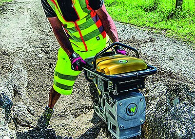 Im Fokus des Wacker Neuson Messeauftritts stehen die Produkte aus der zero emission Reihe. Eine Neuheit ist die erste reversierbare Akkuplatte mit Direktantrieb: APU3050e. Die Vibrationsplatte mit einer Arbeitsbreite von 50 Zentimetern und einer Zentrifugalkraft von 30 Kilonewton zeichnet sich nach Angaben des Herstellers durch ihre gute Führbarkeit aus. Eine Besonderheit sei der von Wacker Neuson entwickelte Direktantrieb DireX, der für mehr Effizienz sorgt: Die Vibrationsplatte kommt ohne Keilriemen aus. Dadurch entstehen keine Übertragungs- und Reibungsverluste, die Platte ist äußerst wartungsarm und bietet eine längere Laufzeit.