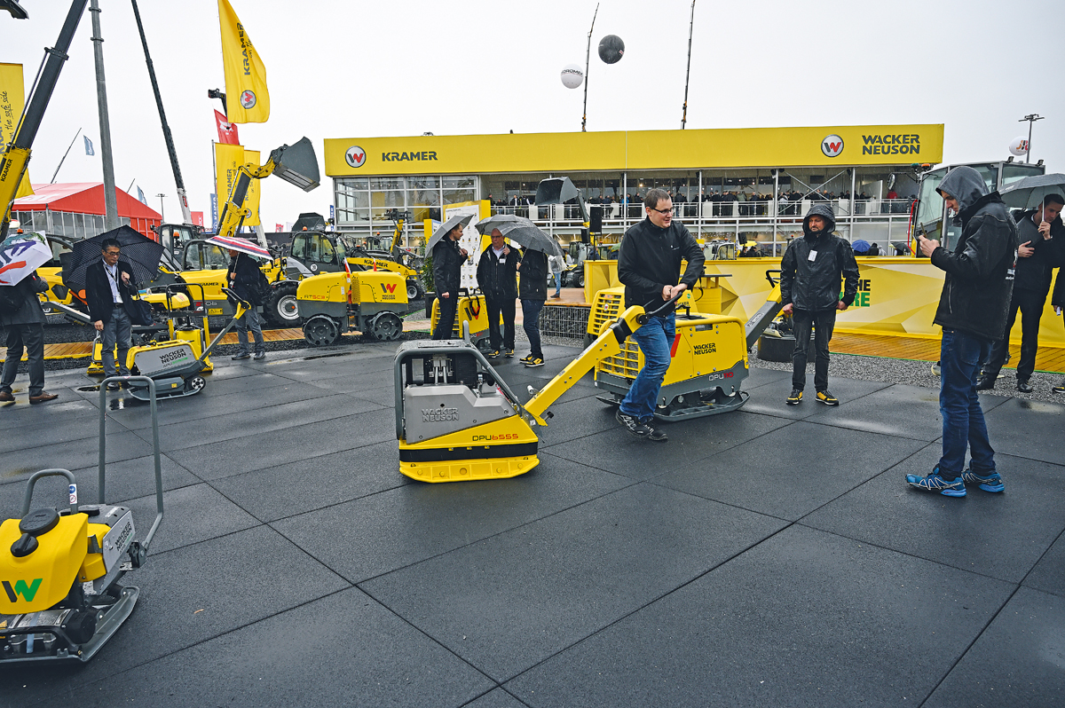 Außerdem hat Wacker Neuson zahlreiche Highlights im Bereich der Baugeräte vorgeführt; u. a. den extrem leichten Benzinhammer BH40. Mit dem 20 kg schweren Hammer möchte der Hersteller den leichtesten Benzinhammer mit bekannt hoher Leistung bieten. Bei Kramer hingegen stand die komplette Riege an allradgelenkten Rad- und Teleskopladern im Mittelpunkt.