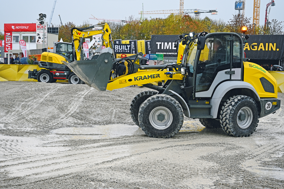 Viel Aufmerksamkeit erhielt das vollhydraulische Schnellwechselsystem Smart Attach, mit dem Anbaugeräte mit hydraulischer Zusatzfunktion in wenigen Sekunden an- und abgekuppelt werden, ohne dass der Fahrer die Kabine verlassen muss. Die Bedienung des Schnellwechslers erfolgt per Joystick aus der Kabine. Das Besondere am Kramer-System: Aufgrund der gleichbleibenden Abmessungen der Schnellwechselplatte können bestehende Anbaugeräte weiter genutzt werden. Auch die Smart-Attach-Anbaugeräte passen an entsprechende Kramer-Radlader im Bestand. Außerdem erhielten die Kramer-Teleskoplader von 3 t bis 5,5 t Nutzlast ein Facelift, das in München debütierte.
