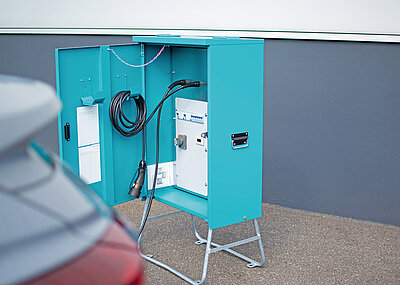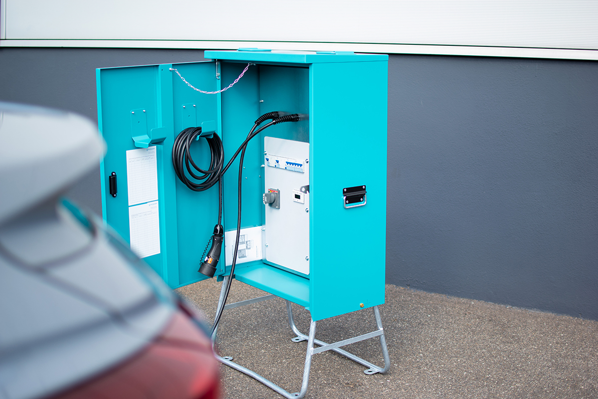 Der R2Charger ist somit die optimale Lösung, wenn es um das betriebssichere und einfache Laden von E-Fahrzeugen auf Baustellen geht.