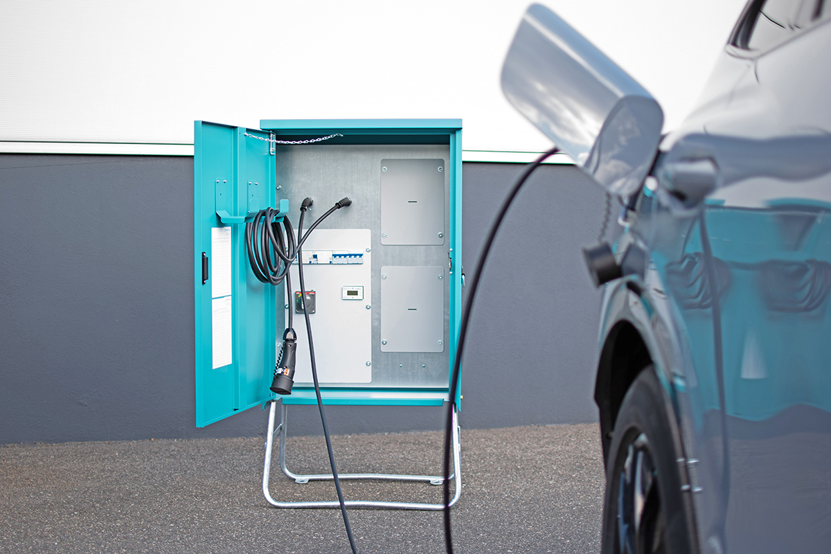 Der R2Charger ist eine neue Ladelösung der WALTHER-WERKE aus Eisenberg, die das betriebssichere und einfache Laden von E-Fahrzeugen auf Baustellen ermöglicht. Der Hersteller hat das Produkt speziell für die besonderen Anforderungen und Bedingungen, die auf Baustellen herrschen, ausgelegt.