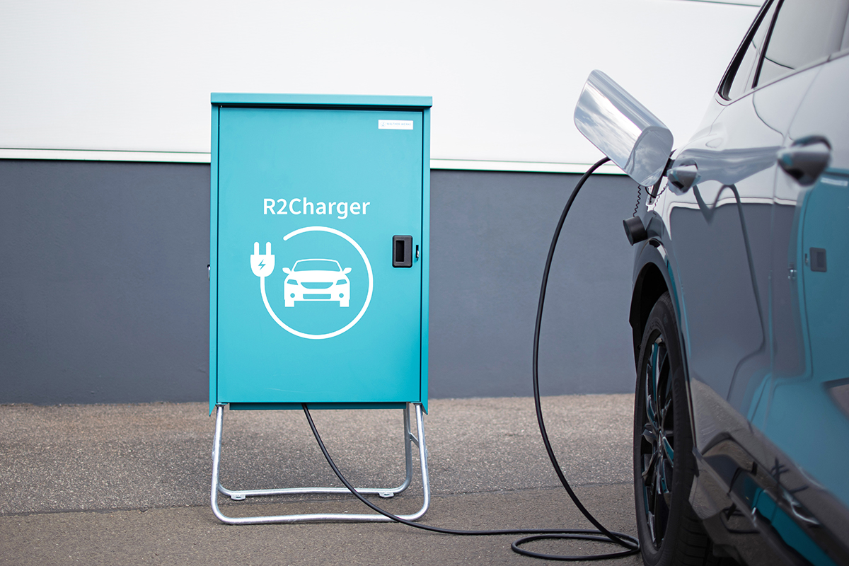 Mit dem R2Charger können zwei E-Fahrzeuge gleichzeitig geladen werden. Der R2Charger verfügt über zwei fest angeschlagene 5 m Ladeleitungen Typ 2, die über Halterungen in der Tür sauber verstaut werden. Je Ladepunkt steht eine maximale Leistung von 11 kW zur Verfügung. Die nutzerfreundliche Plug ʼnʼ Charge Technik ermöglicht dem Anwender ein einfaches, unkompliziertes Laden.