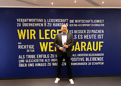 Während der Eröffnungsfeier anlässlich der neuen Büroräume und des 30-jährigen Jubiläums war vonseiten der Mitarbeiter zu spüren, wie sehr alle hinter dem Produkt und dem Unternehmen stehen – die bereits erwähnte interne Philosophie der »Learning Moments« hat daran sicher einen großen Anteil. Gastredner Tassilo Zimmermann, Ressortleiter »Lebensmittel Zeitung« von 1992 bis 2021, hat eine besondere Beziehung zur deutschen Niederlassung. Er veröffentlichte hierzulande als einer der ersten einen Bericht über das Produkt. In seinem von Anekdoten gespickten Beitrag »Die Marke ›WD-40‹ – eine innovative Erfolgsgeschichte« ließ er die Historie der Marke Revue passieren.