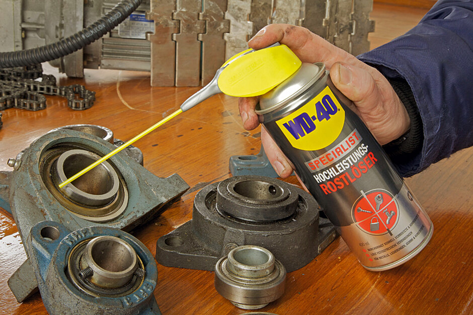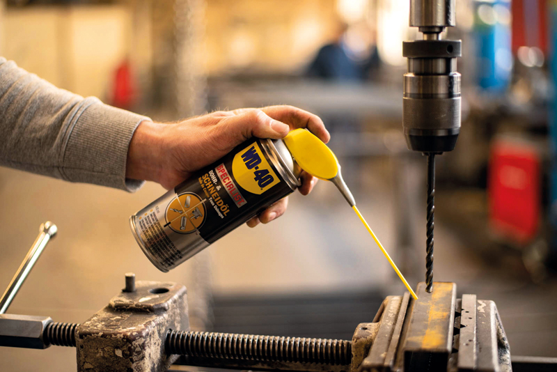 Die Produktserie WD-40 Specialist beinhaltet die wichtigsten chemisch-technischen Spezialprodukte, dem jeweiligen Einsatzbereich angepasst. Das Bohr- und Schneidöl WD-40 Specialist beispielsweise bietet eine verbesserte Schmierung, um Gratbildung, Loch- und Metallfraß zu vermeiden. Es vereint Druck- und Verschleißadditive in einer Formel, um eine ausgezeichnete Schmierung von Bohrern und Schneidmessern zu ermöglichen. Das Bohr- und Schneidöl soll die Hitzeentwicklung durch Reibungskräfte beim Bohren, Schneiden und Sägen reduzieren und die Lebensdauer von Bohrern, Schneidwerkzeugen und Schneidmessern verlängern. Es ist für den Einsatz auf Stahloberflächen, Metallschneideblättern und Bohrern konzipiert.