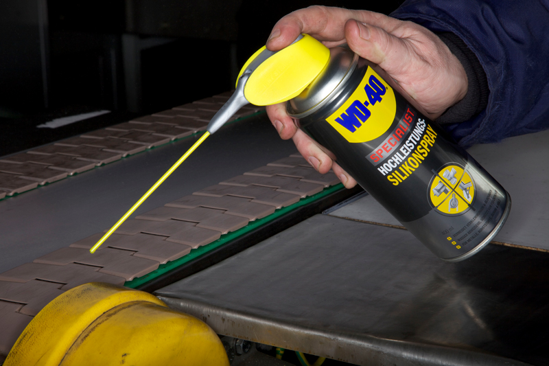 Das Silikonspray aus der gleichen Serie verhindert nicht nur Verklemmungen und Blockaden, sondern weist auch Feuchtigkeit ab und wurde für eine verbesserte Leistung unter hohem Druck entwickelt. Es wirkt bei extremen Temperaturen von – 35 °C bis + 200 °C. Silikon steht für ausgezeichnete Materialverträglichkeit mit Metall, Holz, Kunststoff und Gummi. Entsprechend kann das Produkt zur Schmierung von Metall-Kunststoff- oder Metall- Gummi-Verbindungen angewendet werden. Seine positiven Eigenschaften hinterlassen eine Schutzschicht auf den Maschinenkomponenten und wirken somit gegen Rissbildung und Alterung. t