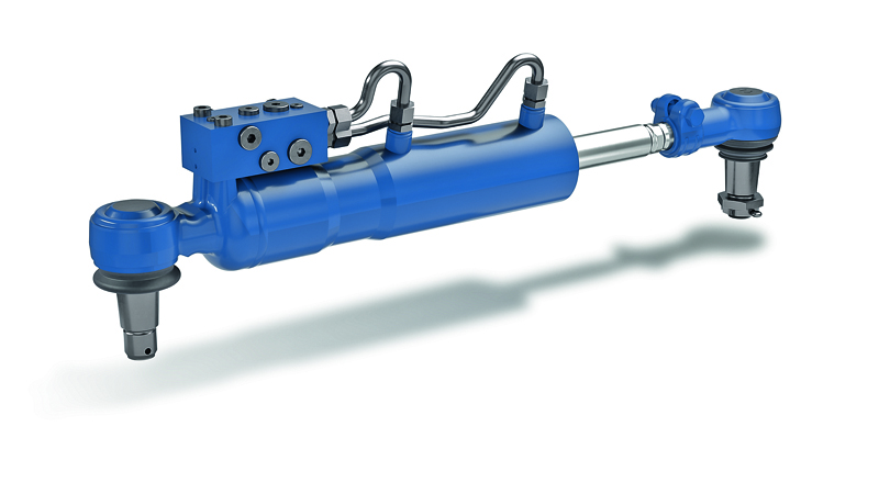 Lenkzylinder, die überdies eine Zentrierungsfunktion beinhalten, erleichtern das Rangieren von Mobilkranen und stellen bei zu hoher Geschwindigkeit oder im Fehlerfall die Hinterachse auf Geradeauslauf.