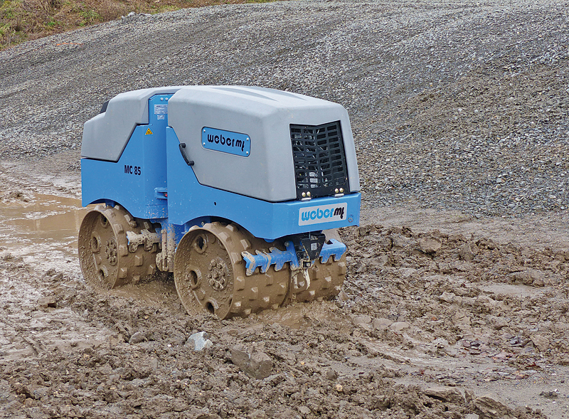 Bindige Böden sind oft schwer zu verdichten. Für die neue Grabenwalze MC 85 von Weber MT sollen sie jedoch keine Herausforderung darstellen. Die Kombination aus hoher Zentrifugalkraft und dem Kneteffekt der genoppten Bandagen ermöglichen selbst die Verdichtung lehmiger und feuchter Böden. Eine gute Traktion verspricht dabei die hydraulische Knicklenkung, ohne dass der zuvor verdichtete Boden durch Lenkbewegungen aufgerissen würde. Ob zur Verdichtung von Tragschichten für Fundamente, Wege und Parkplätze oder zum Rohrleitungs- und Kanalbau – das neue Kraftpaket will auf ganzer Linie mit optimalen Ergebnissen zu überzeugen wissen.