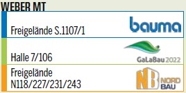 Für Weber MT beginnt das Messetrio Anfang September mit der Nordbau in Neumünster. Mit den Fachhändlern Tramann & Sohn, Behrens+Lüneburger und Manske-PMS stellt das Unternehmen einen Querschnitt der Angebotspalette vor. Mitte September steht dann die GaLaBau in Nürnberg auf dem Terminplan. Im Fokus stehen beim Verdichtungstechniker aus Bad Laasphe (NRW) u. a. Vibrationsplatten und Stampfer mit Elektro- bzw. Akku-Antrieb.