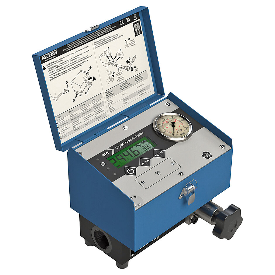 Wie bei allen Webtec-Prüfgeräten sorgt ein integriertes Belastungsventil für eine progressive Druckbelastung in beiden Flussrichtungen. Das einzigartige Interpass-Sicherheitssystem von Webtec mit austauschbaren Sicherheitsscheiben wird bei Überschreiten des Maximaldrucks aktiviert und sorgt dafür, dass der Durchfluss intern zurück in die Rücklaufleitung geführt wird.