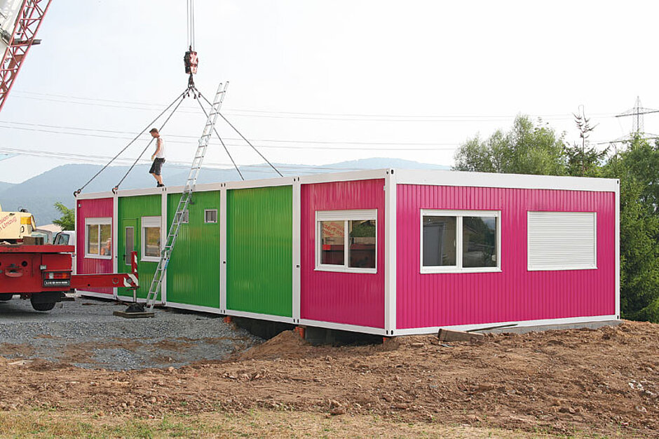 Einer der Vorteile der Containerbauweise liegt sicher auch in der kurzen Projektlaufzeit, die von der ersten Planung bis zur schlüsselfertigen Übergabe des neuen Gebäudes weniger als acht Wochen betrug. §