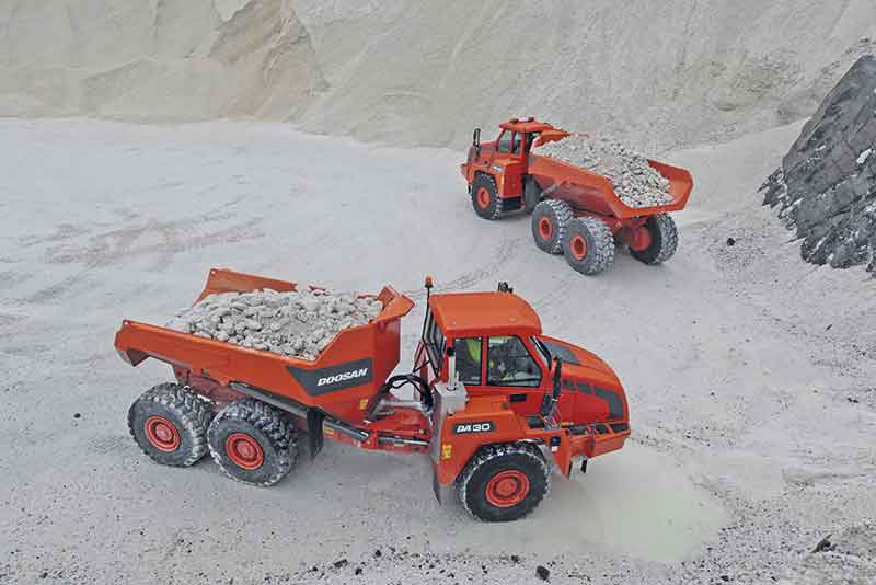 Als Sonderausrüstung ist ein Verfolgungssystem erhältlich, das speziell für die Verwendung auf Doosans ADT vorgesehen ist und umfassende Informationen zu Nutzlasten, Kraftstoffverbrauch und Zykluszeiten bereitstellt. Da Kraftstoffeffizienz stark von den Fertigkeiten und der Erfahrung der Fahrer abhängt, hat Doosan ein Team geschulter Vorführfahrer zusammengestellt, die europäischen Kunden vor Ort an ihren Standorten in den kraftstoffsparendsten Methoden für den Betrieb schulen können. Die beiden Muldenkippermodelle wurden bereits mit dem neuen Doosan-Verfolgungs- und -Kontrollsystem getestet und hätten, so unterstreicht der Anbieter, hervorragende Verbrauchswerte gezeigt, die geringste Kosten pro beförderter Tonne gewährleisten. Die Kraftstoffeffizienz stelle eine weitere Optimierung der Verbrauchswerte der Stufe IIIB/T4i-konformen Maschinen dar, die in vielen Ländern weltweit im Einsatz sind. Diese Muldenkipper überträfen vergleichbare Maschinen im Hinblick auf die Leistung um bis zu 15 % und transportierten mitunter bis zu 10 % mehr Ladung.