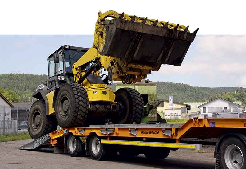 Der Umzug zum nächsten Einsatzort muss ebenso reibungslos und schnell verlaufen. Die Verladung des Radladers erfolgt zügig.