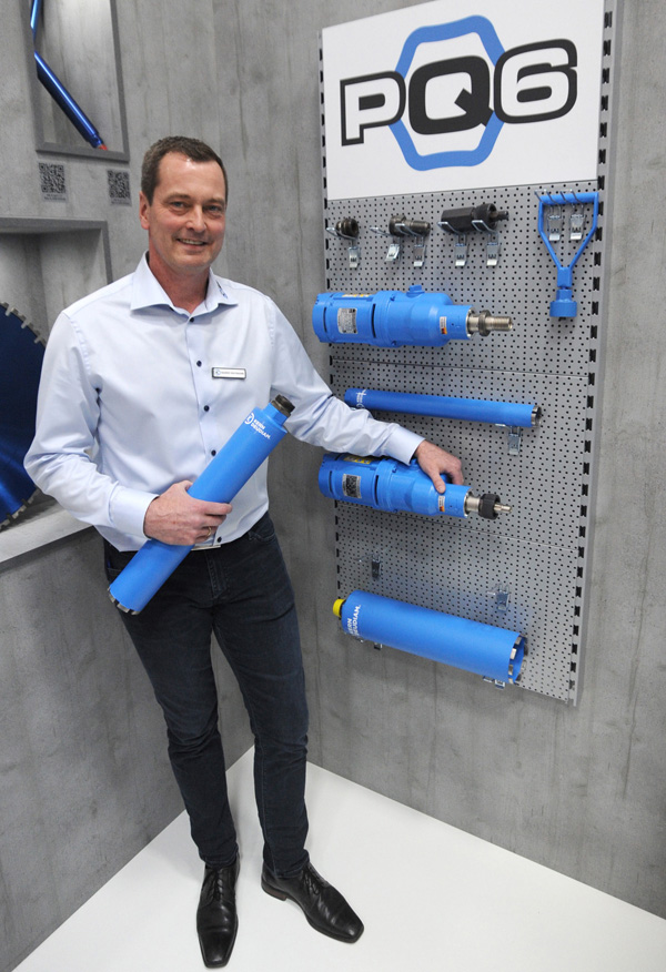 "Unsere Bohrmotoren und Bohrkronen sind alle mit PQ6 verfügbar. Der komplette Systemwechsel bei den Anwendern wird jedoch etwas Zeit brauchen, ich rechne mit fünf bis zehn Jahren. Die Fachbetriebe sind voll ausgerüstet, ihre Lager an Bohrkronen gut gefüllt. Denn die Branche ist seit Jahrzehnten mit der aktuellen Technik unterwegs, das lässt sich nicht auf Knopfdruck austauschen. Bewährt hat sich ein schrittweiser Umstieg, indem zunächst ein erstes Fahrzeug komplett mit dem neuen System ausgerüstet wird. So lassen sich sukzessive die Maschinen und Werkzeuge auf den PQ6 umrüsten. Auch international stößt der PQ6 auf großes Interesse. So habe ich beispielsweise bei der Präsentation auf der Fachmesse World of Concrete in Las Vegas eine erste Musterbestellung erhalten."
