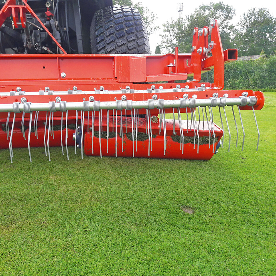 Beim Pflegemaschinenhersteller Wiedenmann gibt es dafür das Anbaugerät Terra Rake, das auch in gezogener Version verfügbar ist und unerwünschten Rasenfilz aus der Grasnarbe holt. Die hohe Fahrgeschwindigkeit bis 15 km/h und Arbeitsbreiten bis 4,6 m sollen den Anspruch des Herstellers verdeutlichen, Nutzern viel Produktivität zu bieten. Zudem können diese das Arbeitsgebiet der Maschine durch wechselbare Werkzeuge erweitern. Etwa mit der Montage einer Bürstenleiste, um aus dem Striegel ein Bürstensystem zu machen. Oder durch das Finish-Werkzeug, mit dem sich die Terra Rake auch zur Unterhaltspflege von Sandbunkern einsetzen lässt. Dieses Spektrum hat Wiedenmann jetzt nochmals ausgeweitet.