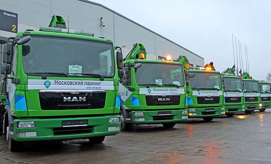 Kommunal- und Spezialfahrzeuge tragen zu dem Marktanteil maßgeblich bei: Beim Parkdienst derrussischen Hauptstadt treten im Februar 260 neue MAN-Abschleppwagen des Typs TGL den Dienst an. Sie sollen falsch geparkte Fahrzeuge bergen, die täglich den Verkehr auf Moskaus Straßen zum Stillstand bringen. Auch Polizei und Feuerwehr benötigen im Einsatzfall oft die Hilfe von Abschlepp-Fahrzeugen.