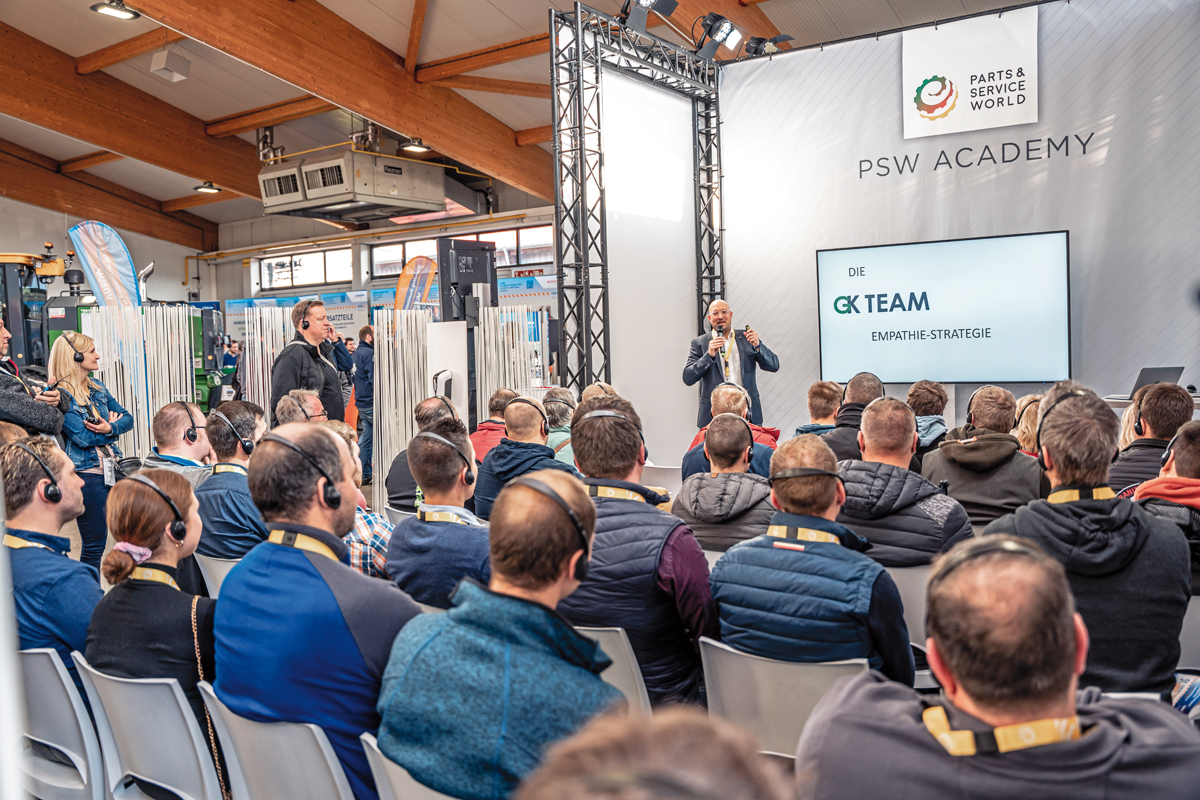 Mit der PSW Academy liefert die Parts & Service World im Oktober ein vielseitiges Fortbildungsprogramm mit mehr als 80 Seminaren, Vorträgen, Workshops und Talkrunden. Von technischen Schulungen für topaktuelle Themen, so etwa Hochvolt, Precision Farming und digitale Fehlerdiagnose, über Schulungen für Vertriebsmitarbeitende und Landtechnik-Quereinsteiger sowie zur Optimierung der Werkstattprozesse finden die Fachbesucher hier spannende Inhalte zu Zukunftsthemen. Die fachkundigen Referenten sind Experten auf ihrem Gebiet. Fachleute der Hersteller oder etablierter Bildungseinrichtungen sorgen in der PSW Academy für ein anspruchsvolles und praxisnahes Programm.d
