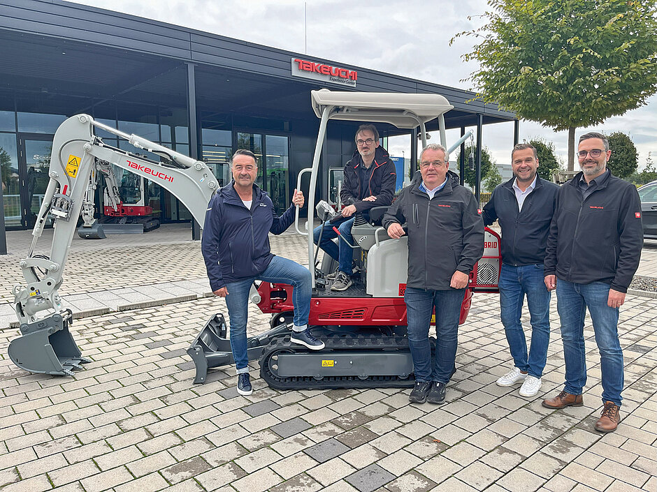 Ausgebildet wird künftig unter anderem an diesem Takeuchi »TB 216 SH« Hybridbagger. Er wiegt 2 t und ist mit einem Dieselmotor mit 11,1 kW, einem Elektromotor mit 10,6 kW, vier Hydraulikpumpen und vier hydraulischen Zusatzkreisläufen sowie einer Funkfernbedienung ausgestattet. Damit ist die Maschine für vielfältige Aufgaben nutzbar.