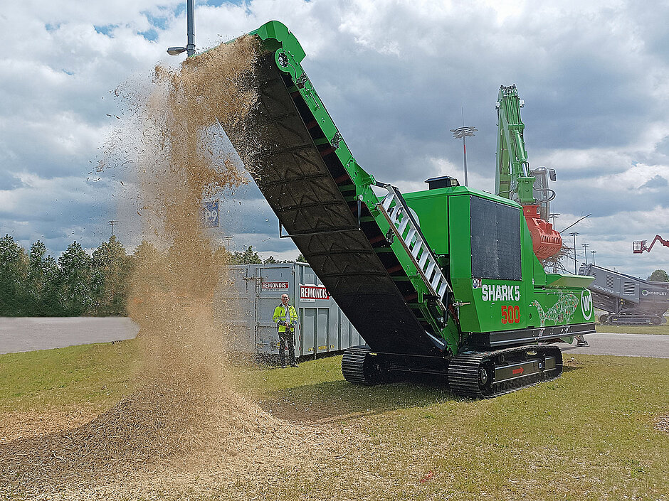 Mit dem Willibald-Hochleistungszerkleinerer (das bauMAGAZIN berichtete in Heft 5/22, Seite 58), der wahlweise mit MAN-Dieselmotoren mit 353 kW oder 383 kW und EU-Abgasnormstufe 5 ausgestattet ist, können Materialien mit einer hohen Durchsatzmenge aufbereitet werden, beispielsweise Rinde bis 230 m³/h. Neben dem Haupteinsatzgebiet der Kompostierung und Biomasseaufbereitung werden die mobilen Schredder zur Erzeugung von Hackschnitzel aus Stamm-, Rest- und Altholz eingesetzt. Zudem kann der Shark 5 auch je nach Einsatzgebiet als Raupen-, Elektro- oder Stationärausführung geliefert werden.
