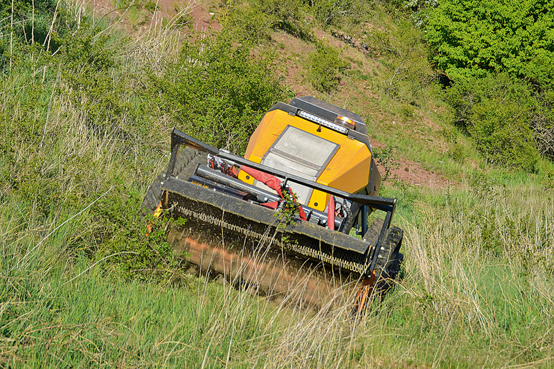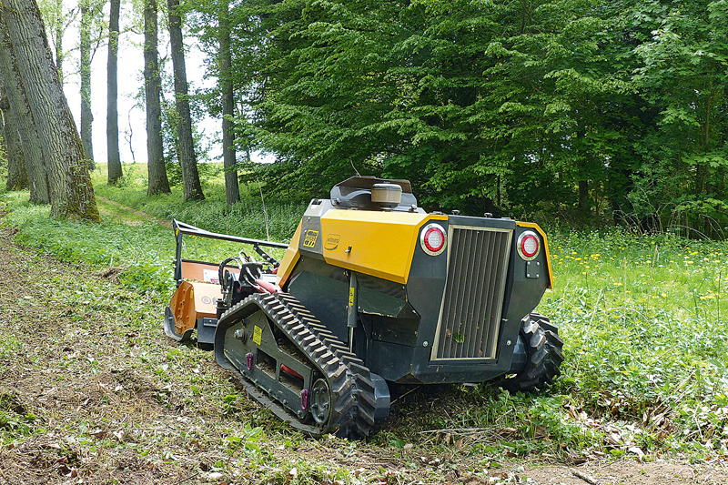 Dank kompakter Bauweise und niedrigem Schwerpunkt erlaubt die Mähraupe an den vielfach schwer zugänglichen Stellen und Böschungen einen Steigungswinkel von bis zu 55°.