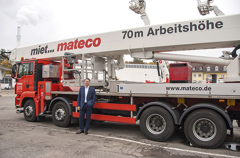 mateco hat als führender Arbeitsbühnenvermieter in Deutschland und weiteren Standorten in Luxemburg und Polen insgesamt 7 000 Arbeitsbühnen in 700 unterschiedlichen Ausführungen in seiner Mietflotte und erwirtschaftete damit im vergangenen Jahr einen Umsatz von rund 100 Mio. Euro. Das 1973 in Stuttgart gegründete Unternehmen, das seit 2009 von Armin Rappen als Geschäftsführer geleitet wird, gehört seit Ende 2012 zur international agierenden belgischen TVH-Gruppe und beschäftigt rund 700 Mitarbeiter an insgesamt 38 Standorten, davon allein 600 in Deutschland. matecos Mietflotte ist in die Sparten Industriegeräte und Straßengeräte unterteilt und in den unterschiedlichsten Bereichen präsent: vom Bausektor über das Facility Management, den Mobilfunk, den GaLaBau, die Medien und bis hin zu großen Events in Stadien oder Hallen.
