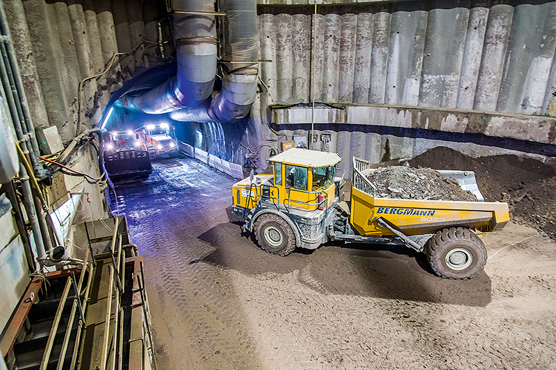 Auch bei der Entwicklung des Tunnel-Dumpers 5025 Mining, dem größten von Bergmann bislang gebauten Dumper überhaupt, sind diese Kriterien maßgeblich gewesen. Innerhalb von gerade einmal knapp zwei Jahren hat Bergmann diesen Spezial-Dumper mit einer Nutzlast von 25 t bei einem Eigengewicht von gerade einmal 19,25 t entwickelt, dessen Mulde bis zu 15 m³ fasst. »Als die Anfrage für den Einsatz bei ›Stuttgart 21‹ kam, haben wir zahlreiche Tunnelbaustellen genauestens analysiert. Erst dann haben wir den Projektverantwortlichen garantiert, dass unser komplett neu konstruierter Dumper funktionieren wird, und zwar effizient, verlässlich und wirtschaftlich.« Heute sind zwölf dieser Spezial-Dumper in Tunnelbaustellen des Projekts S 21 im Einsatz, und Hans-Hermann Bergmann sagt: »Für uns ist das natürlich eine tolle Referenz.«