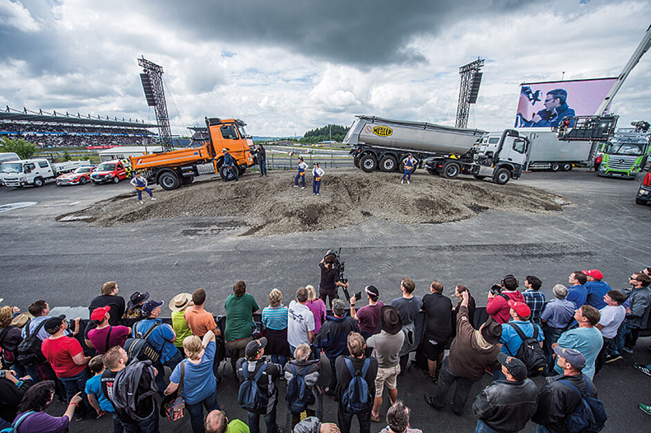 Mehrmals täglich läuft die »Mercedes-Benz Elf« auf einem großen Fußballfeld auf und zeigt dort dynamische Fahraktionen. Als Stürmer agieren AMG-Modelle, die Verteidigung übernehmen die Mercedes-Benz-Vans mit Sprinter und Vito. Den Spielaufbau im Mittelfeld sichern der »GreenTruck« Actros und der robuste Arocs. Im Tor steht das Allzweckfahrzeug Unimog mit Schneeschieberanbau. In gewohnter Weise werden alle Fahraktionen für die Zuschauer kommentiert. Neben der Europameisterschaft wird auch das 20. Jubiläumsjahr des Actros gefeiert: Als Highlights sind ein Actros der ersten Generation von 1996, sowie ein Actros der aktuellen Generation am Eingang des Mercedes-Benz-Stands ausgestellt. Als VIP-Gäste werden am 2. Juli die Musiker von »Boss Hoss« dem Truck-Grand-Prix einen Besuch abstatten. Nachmittags erhalten die Fans der Country-Rock-Band die Chance, sich Autogramme zu sichern.