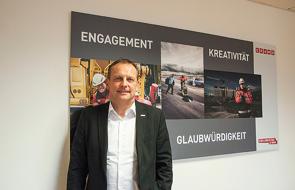 »Dieses Versprechen geben wir unseren Kunden«, so Dirk Schlitzkus, »und beweisen ihm dadurch, dass wir sein Partner sind«. Mit dieser »Cramo Story« habe man ein »Alleinstellungsmerkmal« im Vermietgeschäft kreiert, so Dirk Schlitzkus, das es in dieser Form in Deutschland kein zweites Mal gebe. Immer wieder betont Dirk Schlitzkus, dass die Dienstleistung im Vermietgeschäft von entscheidender Bedeutung sei. Und dabei nehme Cramo eine Vorbildfunktion ein. »Bei der Qualität der Maschinen gibt es kaum Unterschiede«, sagt er. »Deshalb ist es umso wichtiger, die Prozesse zu vereinfachen und zu verkürzen, eine optimale Beratung und eine Logistikplanung anzubieten und einen Service, der alle Erwartungen erfüllt.« Dazu zähle beispielsweise auch, dass Cramo als zertifiziertes IPAF-Schulungszentrum bei der Auswahl der Hersteller und damit beim Thema Sicherheit für den Bediener keine Kompromisse mache.