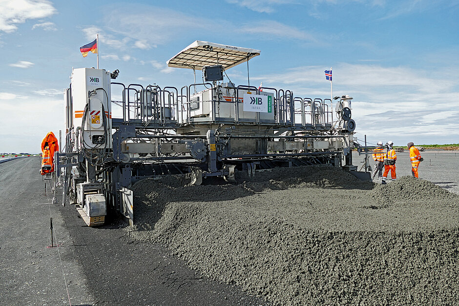 Aufgrund der klimatischen Bedingungen auf der Halbinsel Reykjanesskagi im Südwesten des Landes wurde das zeitliche Baufenster für die Maßnahme von Anfang Juli bis Ende September des Jahres festgelegt. Um die Bauzeit komprimieren zu können, wurde auf das vorherige Stellen fester Schalungen für die einzelnen Bahnen verzichtet. Moderne Maschinentechnologie, wie das Lenk- und Nivelliersystem und der automatische Längsglätter des SP 62i unterstützten das Einbau-Team dabei, trotz des engen Zeitplans die hohen Qualitätsanforderungen zu erfüllen.