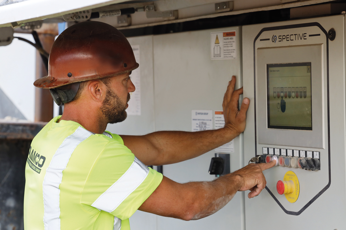 Aufgrund des Bedienkonzepts Spective von Kleemann ist die Handhabung der Mobirex MR 130i EVO2 sehr einfach. Die Maschine wird über ein 12-Zoll-Touchpanel gesteuert. Übersichtliche Bedienhinweise und Piktogramme unterstützen den Anwender dabei, für jede Aufgabe schnell und präzise per Touchscreen die richtige Einstellung zu finden. So werden Bedienfehler vermieden und die Arbeitssicherheit erhöht. Wichtige Funktionen, wie beispielsweise die Spaltverstellung, werden auf einfache Weise ausgeführt – vollhydraulisch und im laufenden Betrieb. „Spective ist sehr einfach. Man benötigt für die Bedienung keine große Erfahrung“, erklärt Darrel Burroughs Bediener bei Ramco. „Insgesamt ist der Kleemann MR 130i EVO2 Prallbrecher äußerst benutzerfreundlich und gut in der Handhabung.“