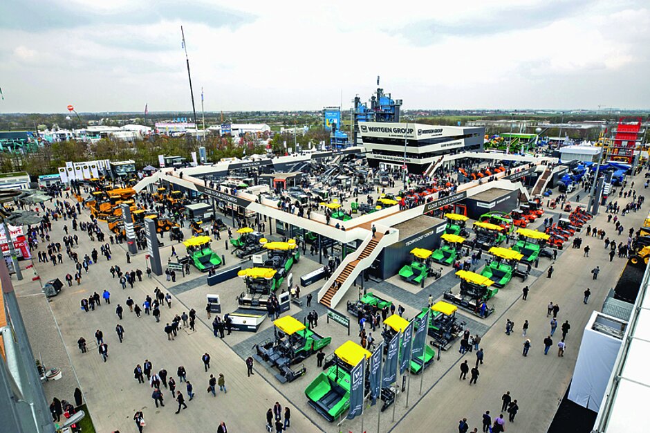 Mit den 18 Weltpremieren und 25 Innovationen hat der Unternehmensverbund darüber hinaus den eigenen Anspruch als Innovationstreiber und Technologieführer im Straßenbau untermauert. Im Mittelpunkt des Besucherinteresses standen neben den sechs Technologie-Ausstellungen zweifelsohne die Maschinenneuheiten. Entsprechend groß war der Andrang an den Exponaten – zum Beispiel an der intelligenten Wirtgen-Kaltfräse W 210 Fi mit Mill Assist (siehe Seite 98) oder dem beeindruckenden Vögele-Großfertiger Super 3000-3(i) mit 18-m-Bohle, dem weltweit größten Fertiger (Seite 96).