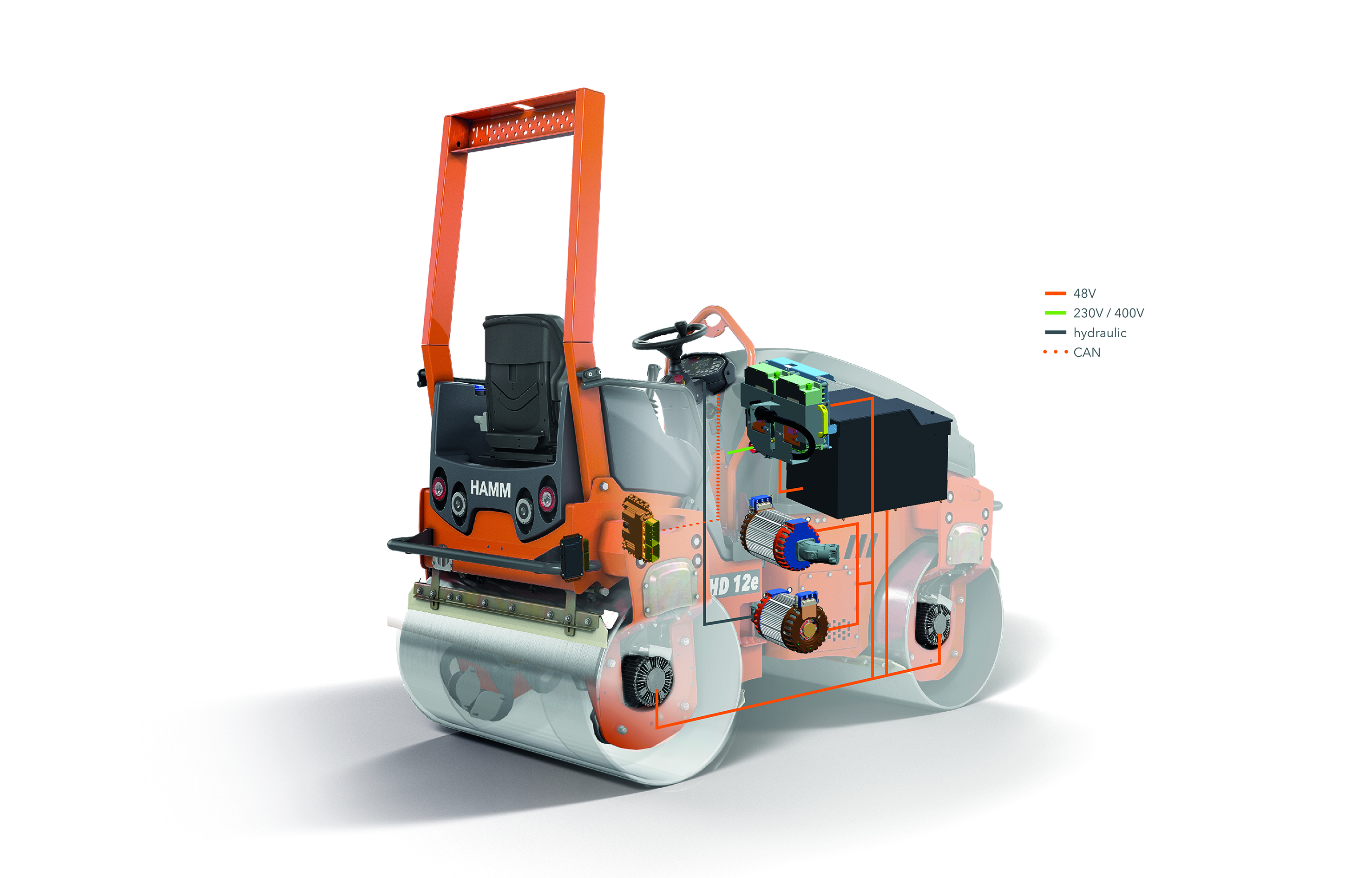 Insgesamt acht Elektro-Walzen in der Kompaktklasse stehen nun zur Verfügung. Die Modelle HD 10e (Bandagenbreite: 1,00 m, Einsatzgewicht: 2,5 t) bzw. HD 12e (Bandagenbreite: 1,20 m, Einsatzgewicht: 2,7 t) weisen die gleiche Verdichtungsleistung auf wie ihre Schwestermodelle mit Verbrennungsmotor, arbeiten aber komplett emissionsfrei. Die CO2-Einsparung gegenüber diesen Maschinen beträgt im Mittel ca. 10 kg CO2 pro Betriebsstunde. Die Bedienung der E-Walzen ist identisch mit den anderen Modellen der Serie HD CompactLine.