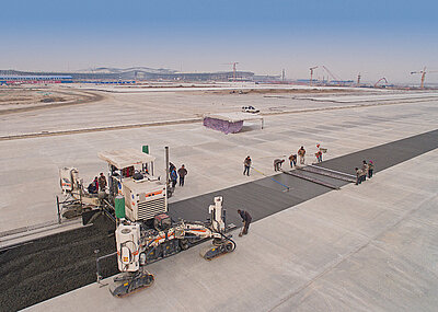 Auf einem 1,4 km langen Abschnitt in der Provinz Vicenza galt es, den Belag nahe der Ausfahrt Thiene 22 cm tief zu fräsen. Anschließend wurde die untere Tragschicht mit einem Wirtgen-Recycler und -Bodenstabilisierer des Typs WR 250 auf rund 15 000 m² mit Zement stabilisiert und von Hamm-Walzen verdichtet. Fertiger von Vögele bauten danach den Asphalt ein.