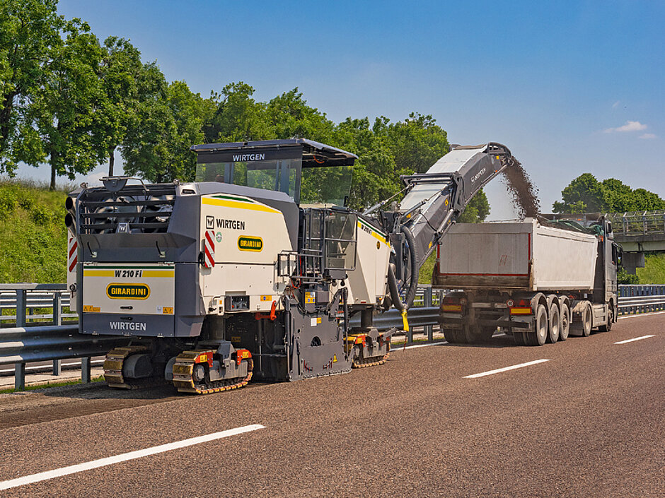 Über die intelligente Steuerung des Zwei-Gang-Lastschaltgetriebes in Verbindung mit dem Dieselmotor lassen sich die Fräswalzendrehzahlen nach unten und oben erweitern. So sollen im niedrigen Fräswalzendrehzahlbereich der Kraftstoff- und Meißelverschleiß deutlich reduziert werden. Im oberen Fräswalzendrehzahlbereich ist es möglich, auch bei hohen Flächenleistungen eine hohe Qualität des Fräsbildes zu erzielen. Damit zeigt sich die Profimaschine W 210 Fi für besonders anspruchsvolle Fräsaufgaben geeignet.