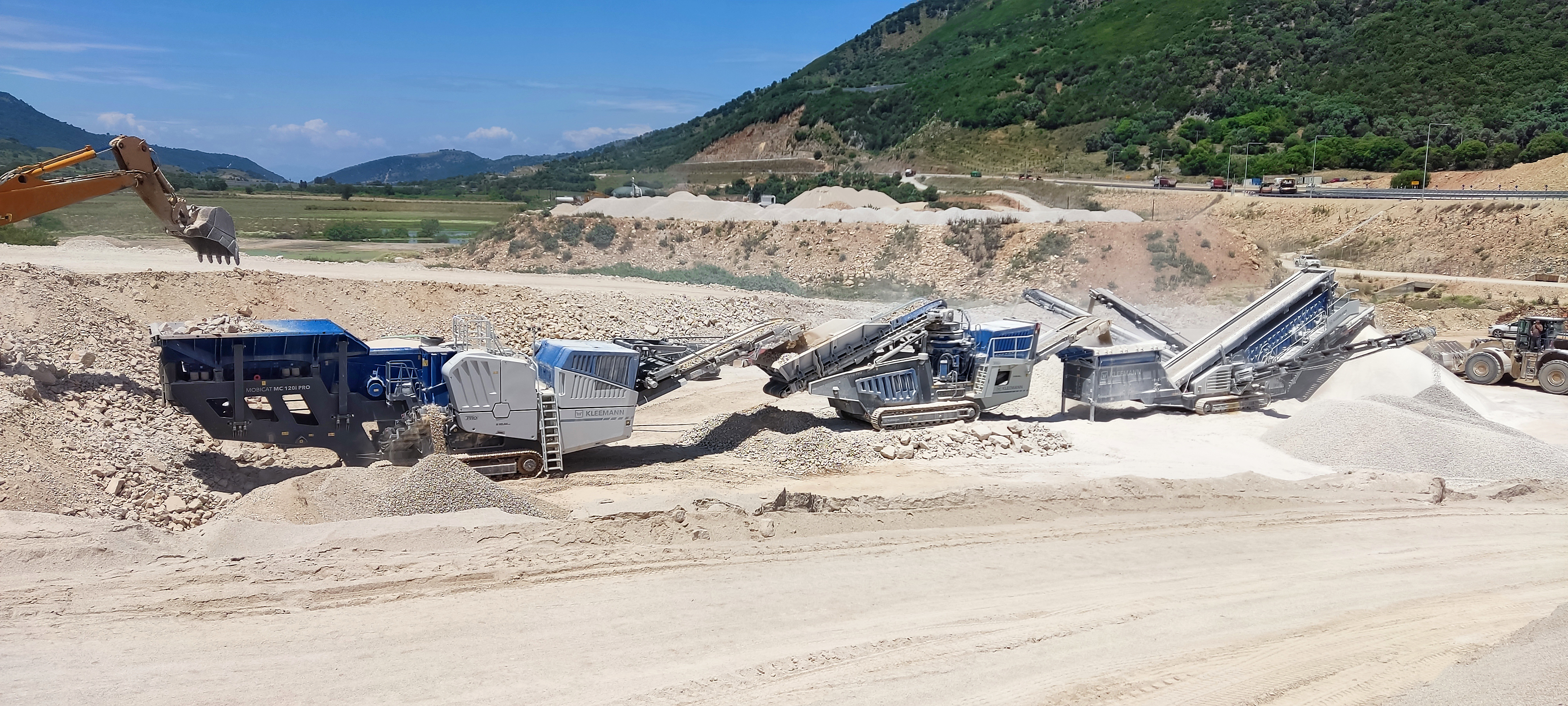 Für den Bau der 48,5 km langen Autobahn, die eine wichtige Rolle für die Tourismusregion des Ambrakischen Golfs im Nordwesten Griechenlands spielt, wird eine große Menge an hochwertig aufbereitetem Gesteinsmaterial benötigt. Bei der Projektierung entschied sich das ausführende Bauunternehmen für einen Kleemann Anlagenzug aus der Pro-Line: Mobicat MC 120i Pro und Mobicone MCO 110i Pro. Ergänzt werden die beiden Kraftpakete durch das Klassiersieb Mobiscreen MSC 953i Evo.