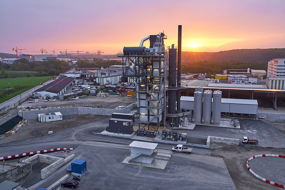 Mit der neuen Anlage möchte der Kunde den Ausstoß der CO₂-Emissionen über den Recyclinganteil und die eingesetzten Brennstoffe sowie die Gesamtkohlenstoff-Emissionen (Cges) über den Einsatz der Heißgaserzeuger-Technologie signifikant reduzieren, um den Vorgaben des neuen Schweizer CO₂-Gesetztes zu entsprechen und die strenge Luftreinhalteverordnung (LRV) in allen Punkten zu erfüllen. Mithilfe der Recyclingtrommel mit Heißgaserzeuger lassen sich die geforderten Grenzwerte nicht nur einhalten, sondern sie ermöglicht auch bei zukünftigen Gesetzesverschärfungen die Einhaltung neuer Grenzwerte.