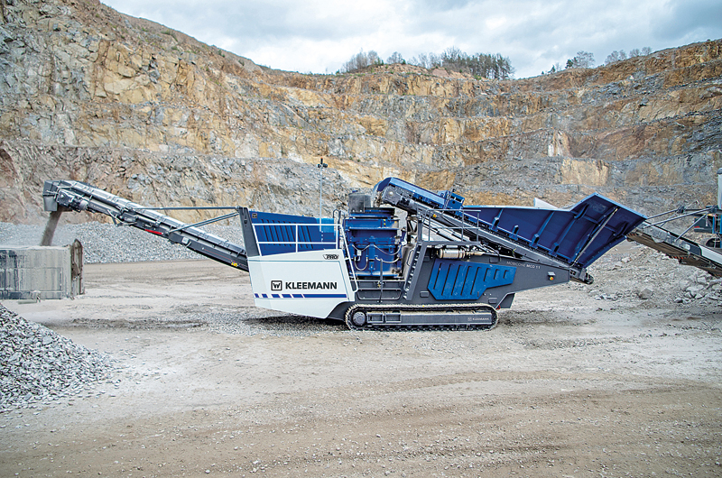 Erstmalig zu sehen bekommen die Fachbesucher die neue mobile Backenbrechanlage Mobicat MC 120 Pro von Kleemann. Die für den Steinbrucheinsatz entwickelte Anlage gilt als extrem robust und für eine hohe Durchsatzleistung von bis zu 650 t/h konstruiert. Herzstück ist der Backenbrecher, der speziell für die Hartgesteinsaufbereitung ausgelegt ist. Für eine bestmögliche Brecherauslastung kommt das Continuous-Feed-System zum Einsatz. Es regelt die Materialzufuhr in Abhängigkeit des Materialflusses. Um eine effektive Vorabsiebung von Feinanteilen zu erreichen, ist die MC 120 Pro mit einem integrierten Doppeldecker-Vorsieb mit extragroßer Siebfläche ausgestattet. Gesteuert werden die Brechanlagen der Pro-Serie mit dem intuitiven Steuerungskonzept »Spective«. Über ein Touchpanel werden alle Anlagenfunktionen und -komponenten kontrolliert.