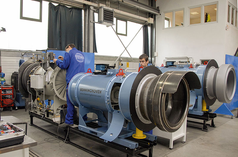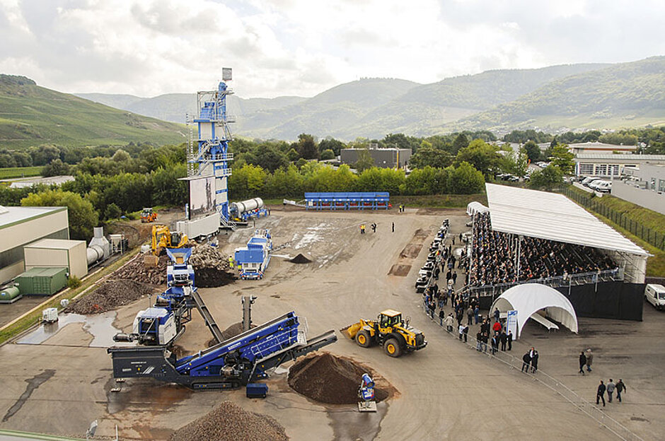 Wie diese im Geschäftsfeld Mineral Technologies aussehen, davon bekamen die rund 2 500 Besucher aus mehr als 100 Ländern einen Einblick während der Mineral Technology Days beim Asphaltmischanlagen-Spezialisten Benninghoven in dessen Werken in Mülheim und Wittlich. Dabei beeindruckten die hohe Fertigungstiefe und das Handling der riesigen Werkstücke bei der Produktion ebenso wie die Ausstellung mit 19 Maschinen, die einen Überblick über das Produktprogramm in der Sparte Mineral Technologies gab.