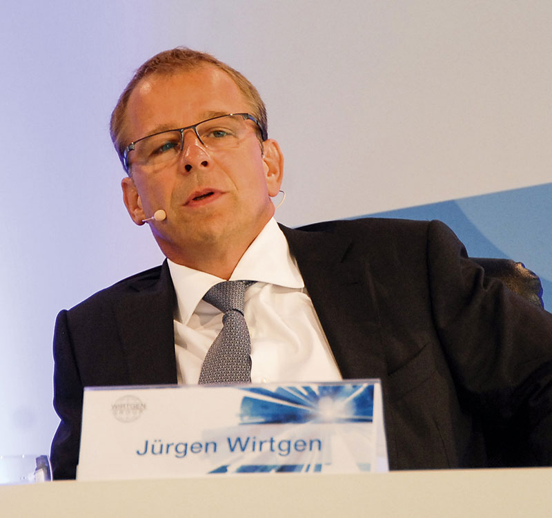 Dazu gehört unter anderem auch, dass weltweit die Vertriebs- und Serviceorganisation weiter ausgebaut worden ist, werden doch 90 % des Umsatzes im Export erzielt. »Wir sehen uns als globales Unternehmen und fokussieren uns weiter auf die Internationalisierung der Wirtgen Gruppe«, sagte Jürgen Wirtgen. Dabei hätten die fünf Werke in Deutschland weiterhin eine »enorme Bedeutung, werden dort doch 85 % unseres Gesamtvolumens produziert«.