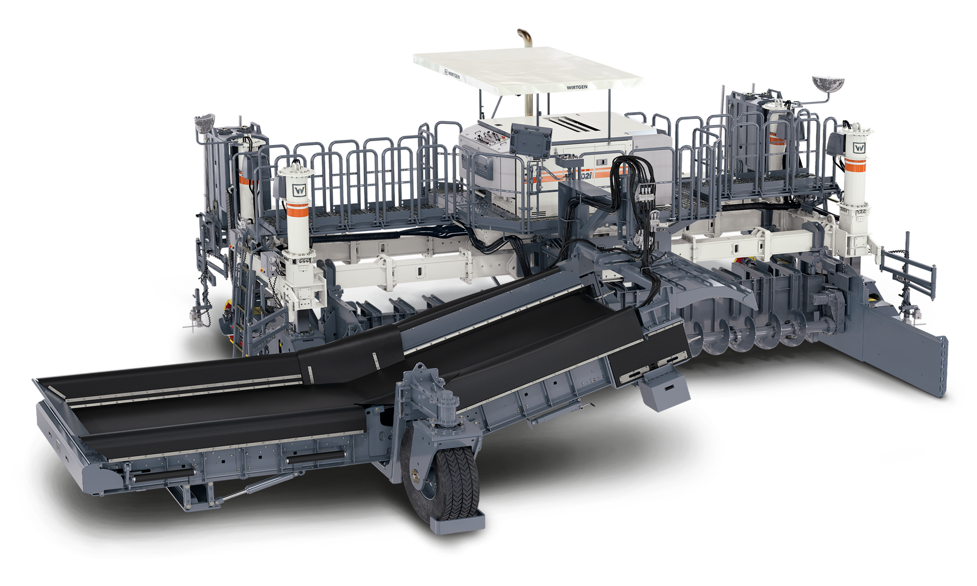Wenn Fahrbahnen und Wege mit einer vorgelegten Bewehrung eingebaut werden, kann die Betonversorgung häufig nur von der Seite erfolgen. Für diese Anwendung empfiehlt Wirtgen seine Seitenbeschicker. Als erstes Gerät im Einbauzug fahren sie vor Gleitschalungsfertiger und Nachbehandlungsgerät über die Bewehrung hinweg. Die Beschickung erfolgt seitlich durch einen Lkw mit Beton, den der Seitenbeschicker gleichmäßig auf der gesamten Arbeitsbreite verteilt. Der Beton kann bei Arbeitsbreiten von 4 m bis 12 m (12 ft bis 40 ft) jeweils bis zu 500 mm (20 in) stark vorgelegt werden. Durch den vollmodularen Maschinenaufbau mit standardmäßigen, hydraulischen Schnellkupplungen lässt sich der »WPS 102i« so einfach umbauen wie sein »kleinerer Bruder« »WPS 62i«. Das sorgt laut Hersteller für schnelle Transporte und hohe Maschinenverfügbarkeit. Der »WPS 102i« kann über Leitdrahtabtastung, leitdrahtlose 3D-Anwendungen oder mittels Wirtgen »AutoPilot 2.0« präzise gesteuert werden.