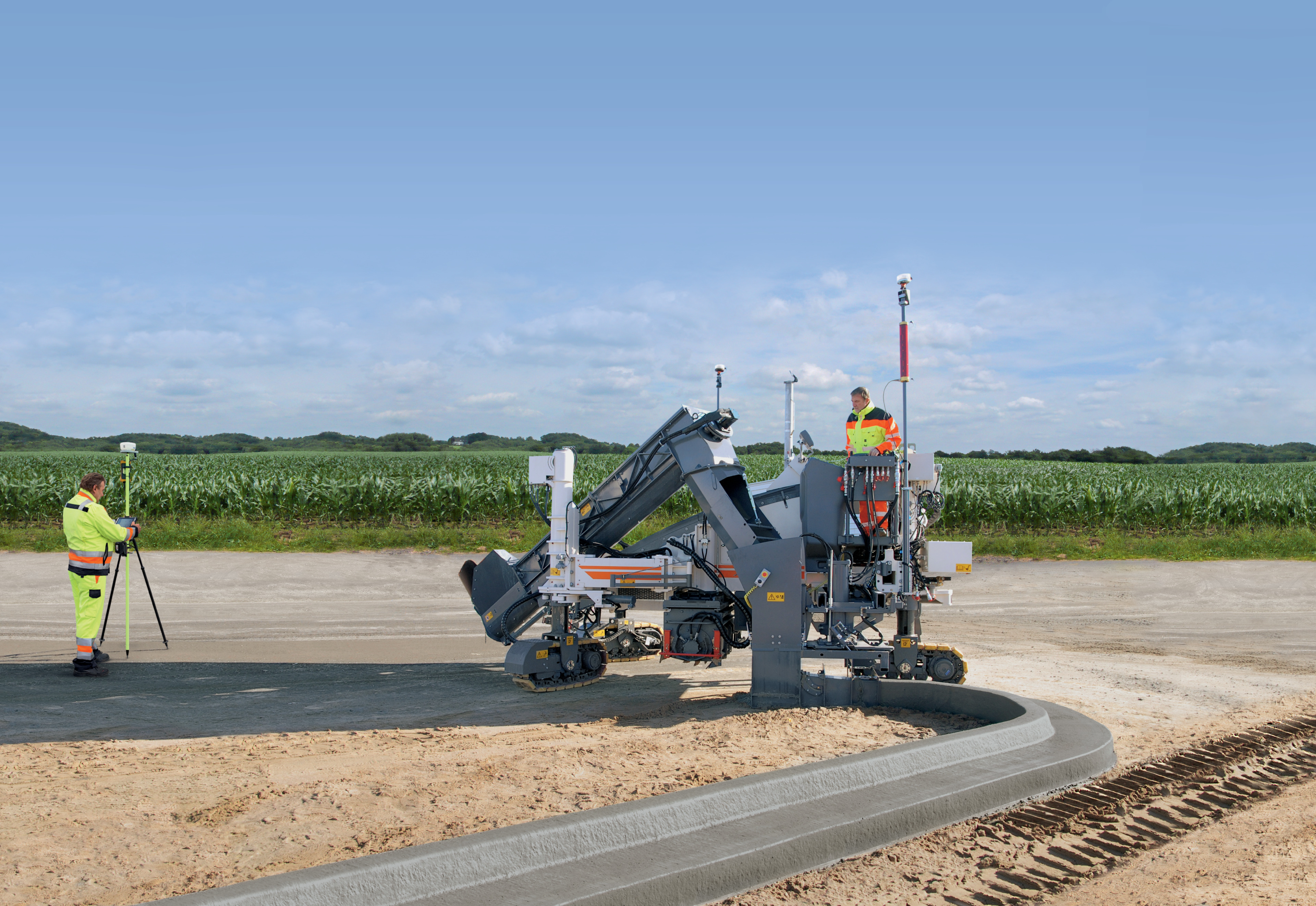 Mit dem »SP 15i« und dem »SP 25i« präsentiert Wirtgen zwei anpassungsfähige Fertiger für den Offset-Betoneinbau. Beide Maschinen ermöglichen die flexible Positionierung der Gleitschalung, was bei der Herstellung monolithischer Profile im Offset-Verfahren ein Vorteil ist. Der »SP 15i« verfügt über eine ausziehbare Bedienplattform-Erweiterung. Sie erlaubt Bedienern eine bessere Übersicht auf das Einbauergebnis, die Betonzuführung, den Übergabetrichter und in den Verdichtungsraum der Mulde. Der multifunktionale Gleitschalungsfertiger »SP 25i« baut verschiedenste monolithische Profile bis 2 m (6 ft 7 in) Höhe und Betonflächen bis 4 m (12 ft) Breite ein. Mit dem eigens entwickelten Steuerungssystem »AutoPilot 2.0« lässt sich die Maschine darüber hinaus leitdrahtlos steuern.