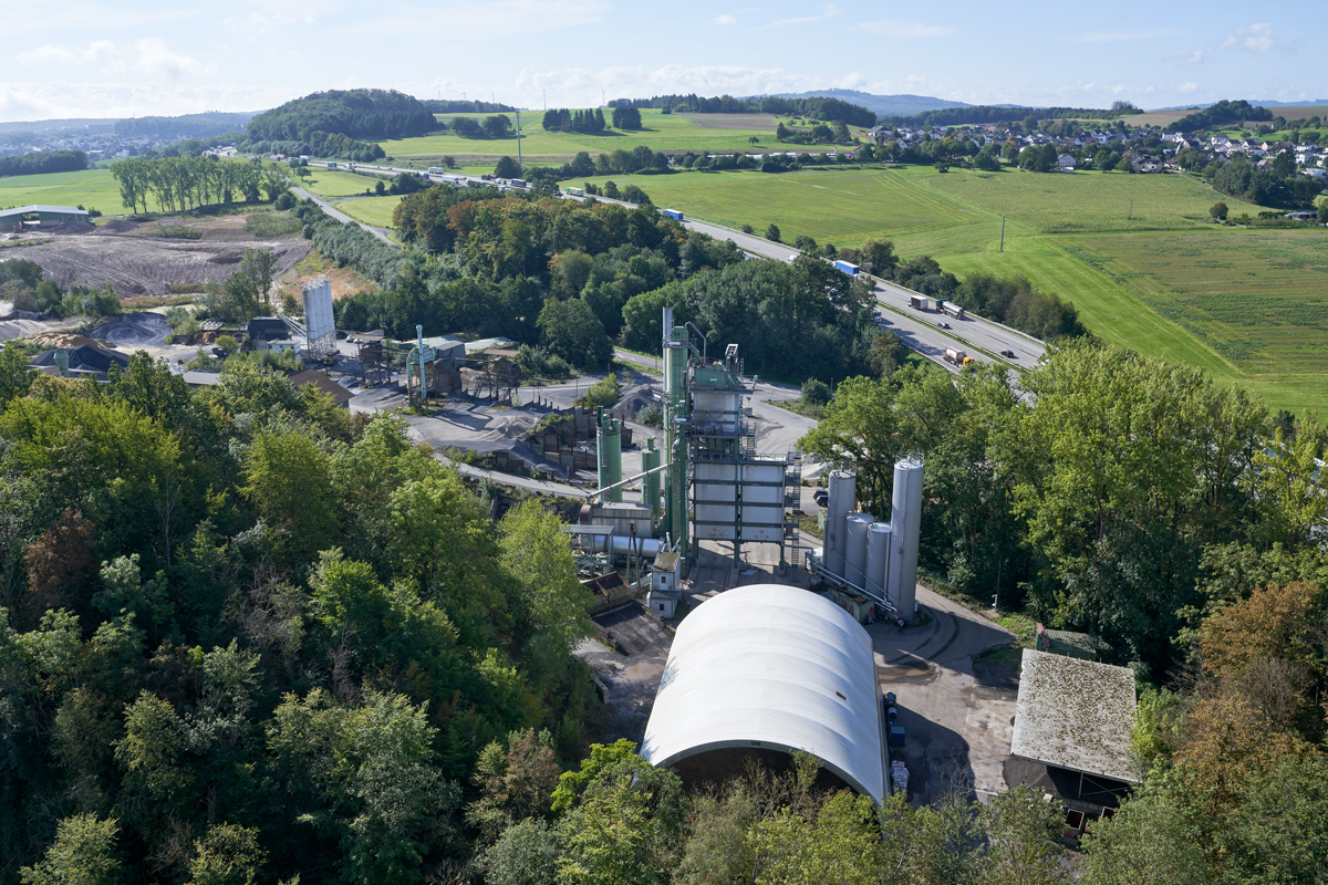 Nachhaltige Asphaltherstellung wird von zwei Aspekten bestimmt: Einerseits gilt es, die Recycling-Zugabequote zu erhöhen, um Ressourcen zu schonen und Altmaterial sinnvoll wiederzuverwenden. Denn je höher die Recycling-Zugaberate ist, umso weniger Frischbitumen wird benötigt und desto geringer ist der CO₂-Fußabdruck. Zudem müssen die strengen Cges-Grenzwerte der in Deutschland gültigen TA-Luft von <50 mg/m³ zwingend eingehalten werden.