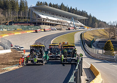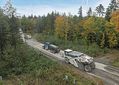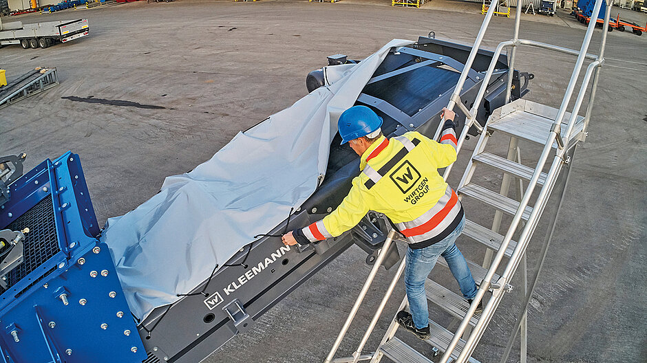 Optionale Lärmschutzpakete reduzieren den Schallleistungspegel um weitere 3 dB und halbieren so das empfundene Geräusch nochmals. Zur Einordnung: Ein durchschnittlicher Presslufthammer kommt auf etwa 120 dB und ein Staubsauger auf 70 dB. Da die Lüfterdrehzahl abhängig von Last, Umgebungstemperatur und Kühlerverschmutzungsgrad bedarfsgerecht geregelt wird, ist der mobile Backenbrecher Mobicat MC 110(i) EVO2 in seiner Grundausstattung schon sehr geräuscharm. Mit einem zusätzlichen Lärmschutzpaket kann die Anlage ohne geräuschdämpfende Kopfhörer bedient werden – abhängig von den Umgebungsbedingungen und lokalen Vorschriften. Bereits ohne Lärmschutzpaket werden direkt an der Maschine lediglich 90 dB und mit rund 85 dB gemessen. Auch ein Eindämmen der Staubentwicklung schützt Anwohner sowie Anwender und sorgt für mehr Akzeptanz von städtischen Baustellen. Kleemann hat mit einer speziellen Bandabdeckung und einem Wasserbedüsungskonzept zwei Maßnahmen entwickelt, die dazu beitragen. s