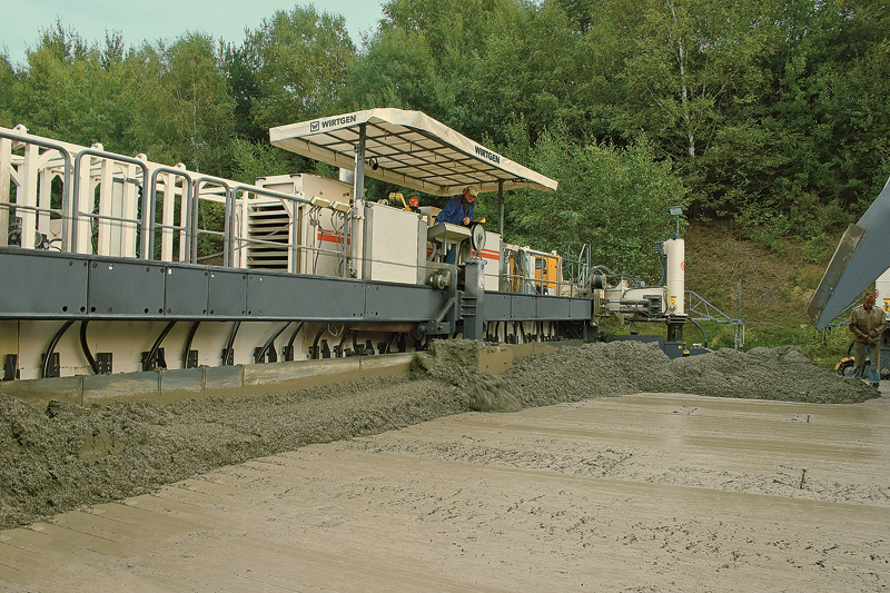 Beim zweilagigen Betoneinbau arbeiten drei separate Maschinen als Einbauzug zusammen: Unterbetonfertiger, Oberbetonfertiger sowie ein TCM als Nachbehandlungsgerät – der SP 154i kann als Unter- bzw. Oberbetonfertiger eingesetzt werden. Dank des umfangreichen Wirtgen-Maschinenportfolios in unterschiedlichen Leistungsklassen lassen sich Betoneinbauzüge entsprechend der Einsatzanforderung gezielt aufeinander abstimmen.