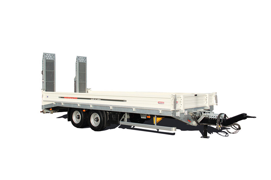 Die feuerverzinkten Stahl-Gitterrost-Auffahrrampen sind einzeln klappbar, seitlich stufenlos verschiebbar und mit Rampenhebehilfe ausgestattet. Für die Ladungssicherheit nach DIN 75 410 sorgen vier Schwerlast-Zurrmulden (im Brückenboden versenkt) sowie 16 Zurrbügel (im Brückenaußenrahmen integriert). Zur weiteren Serienausstattung zählen die stufenlose Zugdeichselhöhenverstellung, eine Kunststoff-Werkzeugkiste oder auch ein Unterfahrschutz links und vorne rechts.