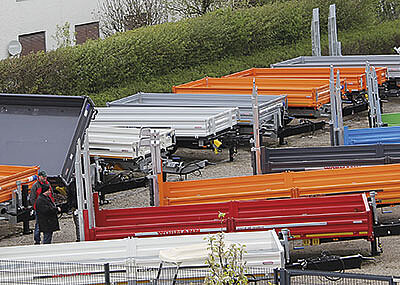 Die profilierten und lasergeschweißten Stapler-Stahl-Seitenbordwände sind 40 cm hoch und werden in Wunschfarbe lackiert. Für eine Beladung können die Seitenwände mittels Bordwandfederheber abgeklappt und abgenommen werden. Eine Durchladung wird durch die liegend angeordnete Deichselhöhenverstellung sowie die klappbare Stirnwand ermöglicht.