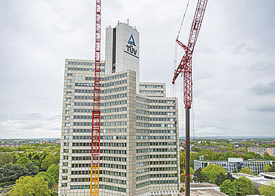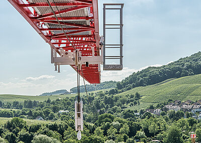 Die Aufgabe, die der Kunde an das WOLFFKRAN Team in Österreich stellte, hielt gleich mehrere Herausforderungen bereit. Der WOLFF 7532.16 cross sollte nicht auf dem Boden, sondern auf einer bestehen-den 6,0 Meter hohen Schienenkonstruktion aufgestellt werden, auf der er im Einsatz hin- und herfahren kann. Die Spurbreite der Schienen be-trägt dabei nur 4,0 Meter. Außerdem muss der Kran einen auf den Schie-nen fest installierten, rund 5,5 Meter hohen Steuerstand passieren kön-nen, weshalb er auf einem Portal stehen muss. „Die Planung war sehr anspruchsvoll. Je schmäler die Spurweite des Portals, desto mehr Bal-last ist notwendig, um den Kran zu stabilisieren. Die Ballastierung beträgt beim 7532.16 cross 60 Tonnen. Gleichzeitig müssen die einzelnen Rad-lasten, die auf die Schienen übertragen werden, möglichst gering sein und durften nur maximal 18 Tonnen pro Rad betragen“, erläutert Wouter van Loon, Produktmanager bei WOLFFKRAN. Die WOLFFKRAN Kon-strukteure verwendeten als Basis ein bereits vorhandenes Portal mit 5,5 Metern Spurweite und modifizierten es so, dass es auf die vorhandenen 4,0 Meter Spurbreite passt. Um bei einem Betriebsgewicht des Krans von über 154 Tonnen die zulässigen Kräfte, die auf die Schienen der Hochbahn wirken, nicht zu überschreiten, steht das Portal an jeder Ecke auf je vier Laufrädern, die das Gewicht verteilen.