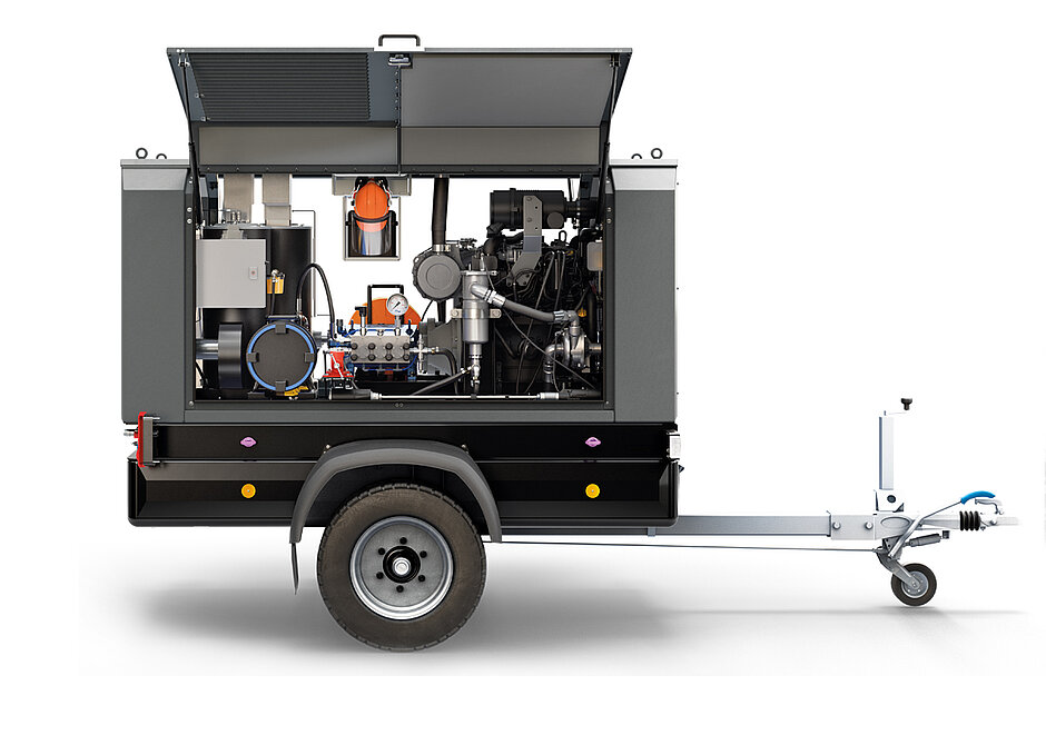 Mit bis zu 95 °C Wassertemperatur und 600 bar bei 40 l/min oder 800 bar bei 32 l/min sollen sich Öle und Fette jeder Art mühelos entfernen oder Beschichtungen abtragen lassen. Ebenso einfach gestaltet sich der Transport der kompakten und gewichtsoptimierten 1-Achs-Trailer: Sie lassen sich mit nahezu jedem Mittelklasse-Pkw zum Einsatzort bringen.